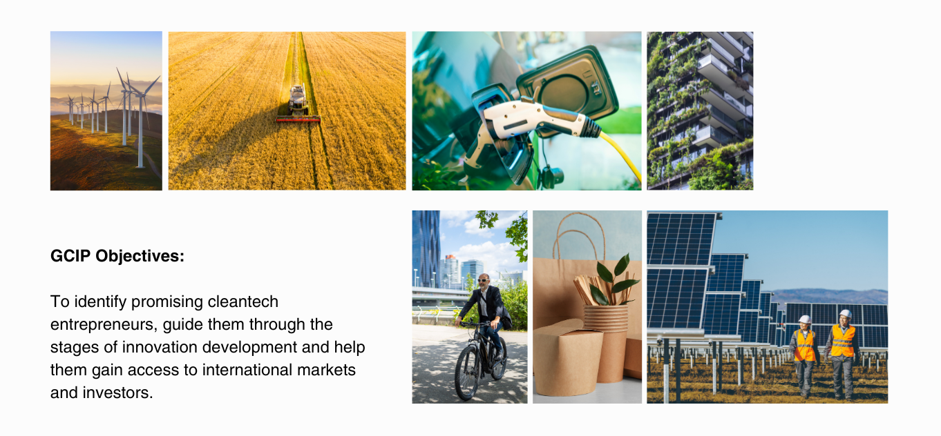 The Global Cleantech Innovation Programme (GCIP) is one of the flagship programs of the Global Environment Facility (GEF) and UNIDO, which promotes innovation and entrepreneurship in the field of environmentally friendly technologies.